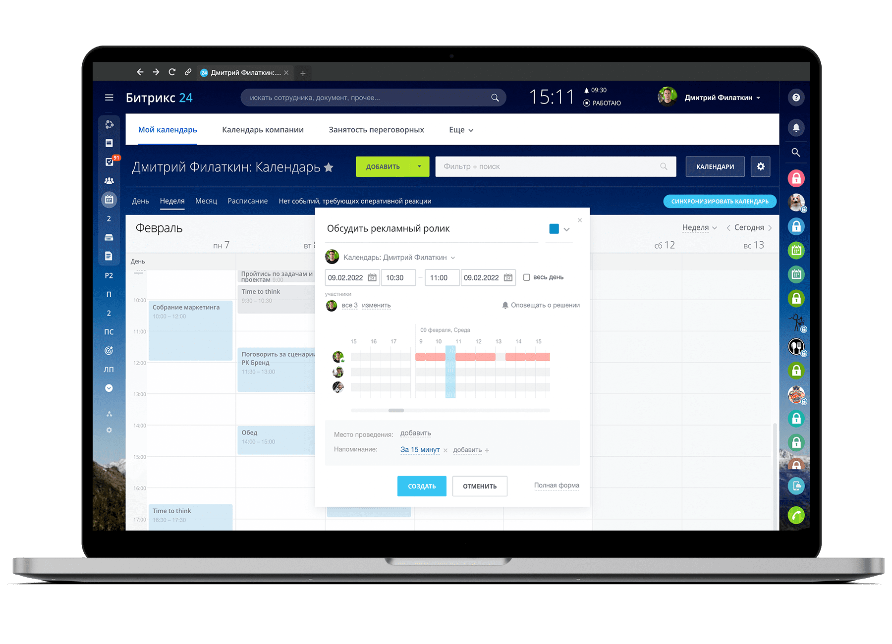 на видеозвонок до 48 участников – прямо из чата, задачи или встречи в календаре.